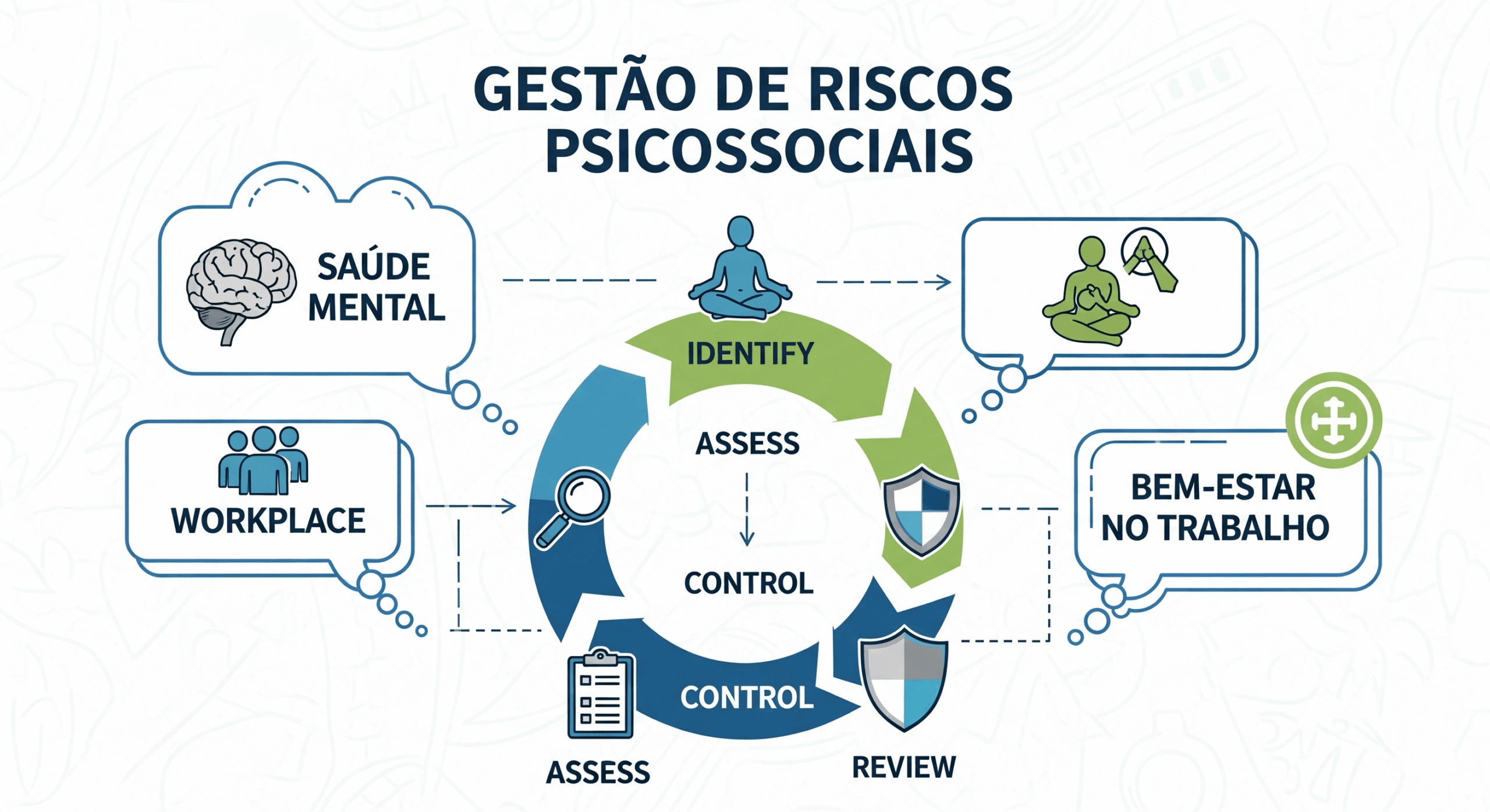 A atenção aos fatores psicossociais no ambiente de trabalho é fundamental para a promoção da saúde mental, prevenção de adoecimentos e garantia de um ambiente ocupacional saudável e sustentável. Com a atualização da Norma Regulamentadora nº 1 (NR-1), que entrou em vigor com a Portaria SEPRT nº 6.730/2020, o Brasil passou a adotar oficialmente o Gerenciamento de Riscos Ocupacionais (GRO), incorporando de forma clara a obrigação de identificação e controle de #RiscosPsicossociais.